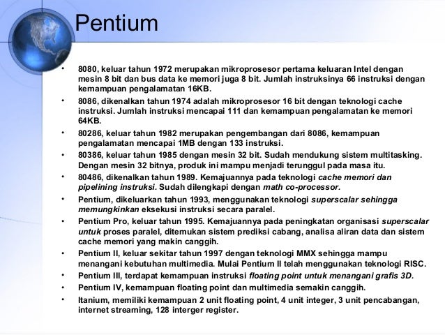 • Menjelaskan perkembangan pentium dan
