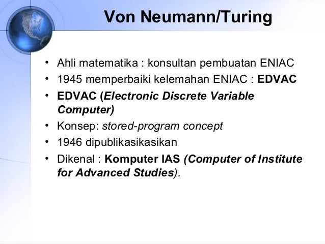 • 1945 memperbaiki kelemahan ENIAC : EDVAC